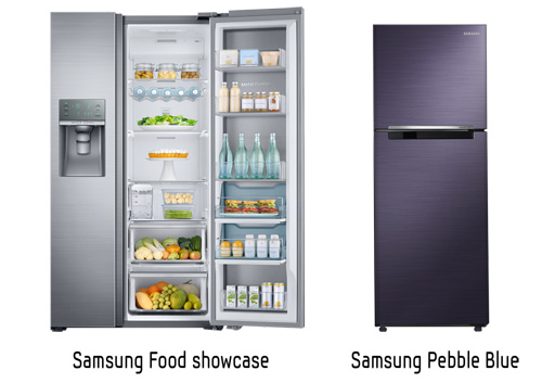 “Tủ lạnh trong tủ lạnh” Samsung Food Showcase: Dung tích lớn nhất lên đến 630 lít, là dòng tủ lạnh cao cấp nhất của Samsung giúp tăng khả năng lưu trữ 20-30% so với sản phẩm cùng kích thước. Thiết kế ngăn lưu trữ khoa học, chia làm 3 khu vực dành riêng cho Mẹ, Gia đình và Bé, giúp mọi thành viên tìm thấy thứ mình cần nhanh gấp 2.1 lần. Hệ thống lấy nước trong với dung tích lên đến 4.5l đủ dùng cho cả gia đình. Tủ lạnh 2 cửa Samsung Pebble Blue Thích hợp cho gia đình 2-3 người. Thiết kế xanh tím lấp lánh đẹp mắt, khả năng giữ thực phẩm tươi ngon suốt cả tuần nhờ hệ thống làm lạnh kép và ngăn Moistfresh Zone giữ ẩm tối ưu cho rau củ. Tối ưu hóa khả năng lưu trữ bằng ngăn chứa đa năng cũng như ngăn chứa trên cánh cửa lớn và sâu hơn, khay kéo trượt thuận tiện. Hệ thống khử mùi với quạt bên trong thổi khí qua một bộ lọc giúp khử mùi và tinh lọc không khí hiệu quả.