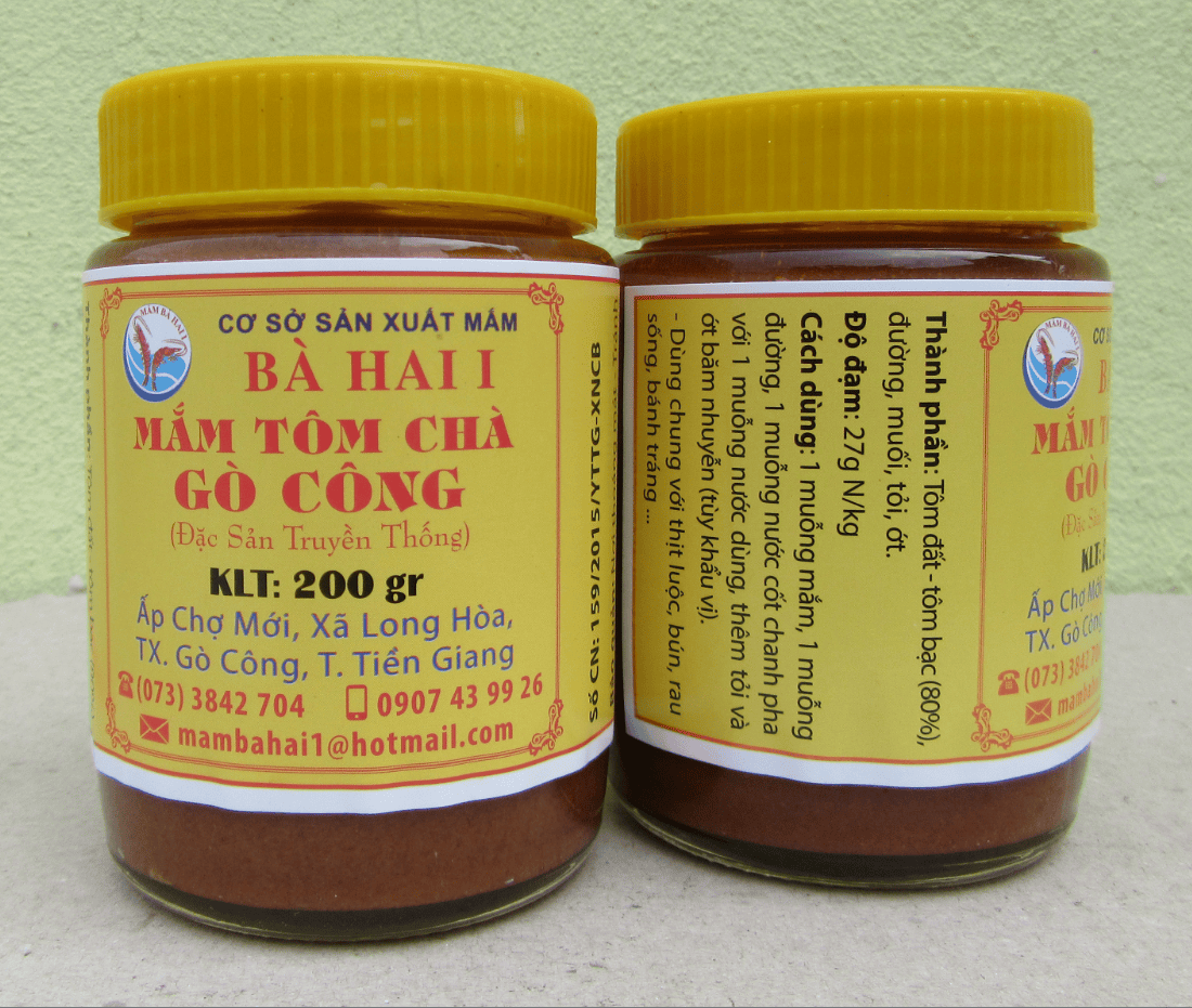 Xem thêmMắm Tôm Chà là đặc sản độc đáo của thị xã Gò Công, mang hương vị tươi ngọt, đậm đà. Mắm Tôm Chà đã có từ lâu đời, nhưng vào ngày tháng năm nào thì không ai biết được, Mắm Tôm Chà đã trở thành món ngon tiến Vua kể từ khi cô gái Phạm Thị Hằng của xứ Gò Công được đưa vào cung hầu vua Thiệu Trị và sau này trở thành Thái hậu Từ Dũ, mẹ vua Tự Đức. Từ đó, món mắm tiến Vua này đã trở thành niềm tự hào rất lớn của người dân Gò Công – Tiền Giang. Nếu xét theo thời gian này, thì tối thiểu Mắm Tôm Chà đã xuất hiện vào đầu thế kỉ 19.